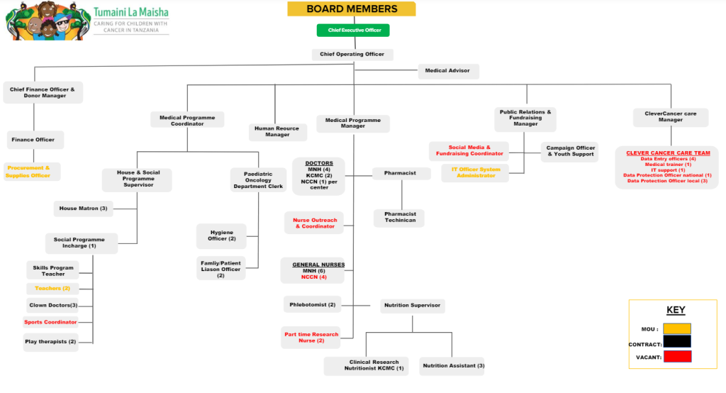 The Tumaini La Maisha Board of Directors manages all the Operations and Programmes related to Children’s Cancer funded by the initiatives of the group ‘We Are TLM’.